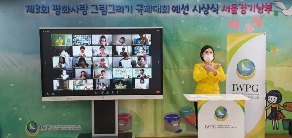 (사)세계여성평화그룹 서울경기남부지부(IWPG, 지부장 이규애)는 제3회 ‘평화사랑 그림그리기 국제대회’ 예선을 지난달 26일 열고, 시상식은 10일 오후 2시 온라인 행사로 성황리에 마쳤다. 지구촌 전쟁종식과 인류의 공존, 소통, 인류의 회복을 주제로 열린 ‘평화야 친구하자!’ 그림대회는 초·중·고 학생 500여명이 참가했다. 이번 대회는 어린이와 청소년들에게 나라사랑과 평화사랑의 마…
