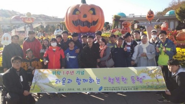 용인시가 운영하는 ‘용인시장애인주간보호센터 라온(센터장 임종필)’에서는 지난 10월 30일(금) 에버랜드 해피투게더 봉사단과 행복한 동행을 하였다. 특히, 이번에 진행된 동행은 대한불교조계종사회복지재단(용인문수산법륜사)의 ‘라온’ 위탁 1주년을 맞아 주지스님(현암)과 함께하여 더욱 뜻깊은 행사로 진행되었다. 에버랜드의 할로윈 축…