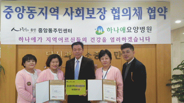 용인시 처인구 중앙동은 민관협력 복지협의체인 지역사회보장협의체가 저소득층을 돕기 위해 관내 헤어숍·병원과 업무협약을 체결했다고 7일 밝혔다. 이번에 협약을 맺은 헤어숍 ‘아르헤어랩’은 매달 첫째주 월요일에 저소득층에게 이미용서비스를 지원하며, ‘하나애요양병원’은 매달 1회 중앙동 주민센터에서 저소득 가정, 홀로어르신에게 건강 상담 및 한방치료를 실시한…