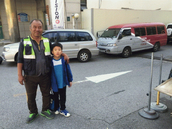 15년간 어린이 안전지킴이 활동하는 용인의 ‘뻥튀기 아저씨’ 화제 구갈초교 앞에서 교통 안내하는 이상용씨