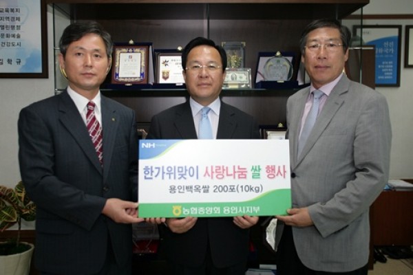추석명절을 맞아 각계에서 온정의 성품 기탁이 이어지고 있다. 용인시 농협중앙회 서은호 지부장이 29일 용인시를 방문해 김학규 시장에게 명절맞이 이웃돕기 성품 백미 200포(10kg/포 450만원 상당)를 기탁했으며 (주)경기·대원고속(대표이사 허명회) 조규갑 기획조정실장도 백미 200포(20kg/포 900만원 상당)를 전달했다. 김학규 시장은 “명…