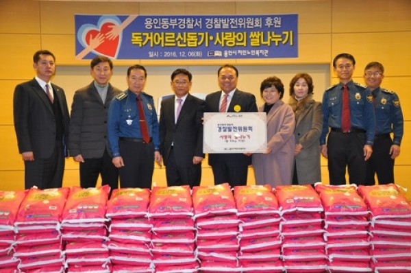 용인시처인노인복지관(관장 김기태)에서는 2016년 12월 6일(화) 용인동부경찰서 경찰발전위원회와 독거어르신 돕기 사랑의 쌀 전달식을 진행하였다. 이날은 이왕민 용인동부경찰서장 및 남동발 경찰발전위원회 위원장을 비롯한 위원들이 참석하여 자리를 빛냈다.이번 후원 연계는 지역사회 홀로 사는 어르신들을 돕고자 계획되었으며, 용인동부경찰서 경찰…