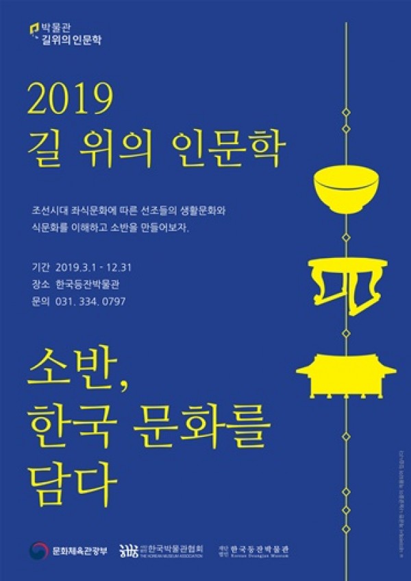 재단법인 한국등잔박물관은 문화체육관광부가 주최하고 한국박물관협회가 주관하는 「박물관 길 위의 인문학」 사업에 7년 연속 선정되어 <소반, 한국 문화를 담다>프로그램을 진행한다. ▲ 한국등잔박물관 길위의인문학 포스터 본 프로그램은 3월부터 11월까지 9개월 간 운영한다. 참가자들은 박물관 유물을 통해 온돌양식에 따른 좌식생활이 보편화된 조선시…
