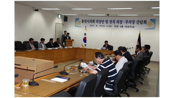 용인시의회 의장단 및 전현직 의장 부의장 간담회 개최 용인시의회 이상철 의장과 의장단은 8.17(수) 11:00 용인시의회 대회의실에서 전직 의장 및 부의장과의 간담회를 개최하였다. 이번 간담회는 …
