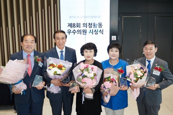 용인시의회(의장 이건한)는 경기도 시군의장협의회가 28일 수원컨벤션센터에서 개최한 제8회 의정활동 우수의원 시상식에서 황재욱·이제남·김상수·김운봉·장정순 의원이 우수의원으로 선정되어 상을 수상하게 됐다고 밝혔다. ▲ 제8회 의정활동 우수의원상 수상 황재욱 의원은 지역경제활성화 분야, 이제남 의원은 공약실천 분야, 김상수 의원은 예산절감 분야…