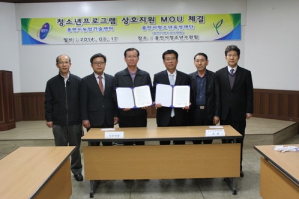 - 청소년수련원 다양한 청소년체험프로그램 연계, 체험활동 확대 용인시는 17일 오후 4시 농업기술센터(농촌테마파크)와 청소년육성재단(청소년수련원)이 청소년수련원 회의실(처인구 양지면)에서 청소년프로그램 상호지원 및 연계프로그램을 통한 다양한 체험활동기회 확대를 위한 업무협약을 체결했다. 이번 업무협약을 통해 용인농촌테마파크를 방…