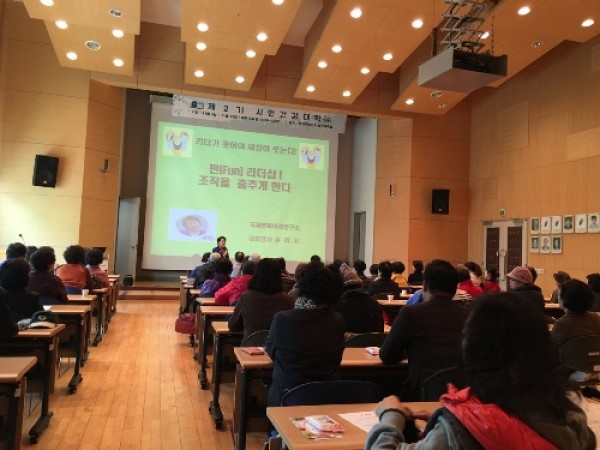 - 4회 과정 수료 후 시민건강서포터즈 활동 용인시는 4일 처인구보건소 교육실에서 시민 70여명을 대상으로 ‘제2기 시민건강대학 강좌’를 열었다고 밝혔다. 국제행복미래연구소 윤미자 대표강사의 ‘펀(fun)리더쉽, 조직을 춤추게 한다’는 강의로 시작된 시민건강대학은 시민의 자가 건강관리 능력 향상을 목적으로 진행되었다. …