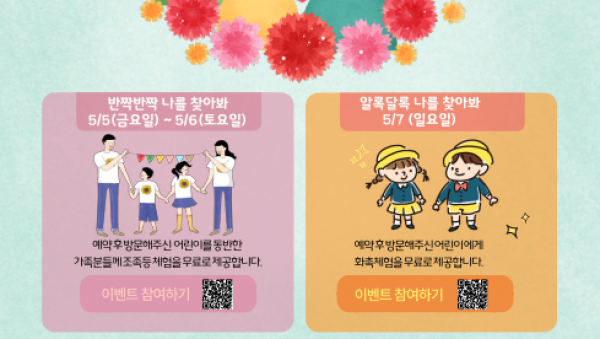 한국등잔박물관, ‘어린이날 주간행사 ’진행 용인시 처인구 소재의 재단법인 한국등잔박물관은 5월 5일부터 5월 7일까지 어린이날 주간 행사를 진행한다. 이 행사는 모두 네 개의 프로그램으로 운영되며, , , 및 로 구성되어 있다. 이 중에서 가족과 함께 조족등을 만드는 프로그램과 화려하고 고급스러운 화촉을 만드는 프로그램은 ‘경기도 박물관·미술관 지원사업’의 일환으로 경기…