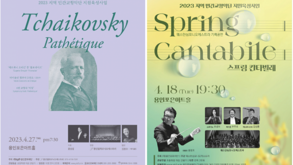 사진 설명 : , 포스터 용인문화재단(이사장 이상일)의 ‘2023 지역 민간교향악단 지원육성사업’ 선정단체인 ‘웨스턴심포니 오케스트라’와 ‘용인필하모닉 오케스트라’의 기획공연이 각각 4월 18일, 4월 27일에 용인포은아트홀에서 개최한다. 용인시를 기반으로 활발히 활동해온 두 단체(웨스턴심포니, 용인필하모닉 오케스트라)는 2023년 봄맞이 이번 기획공연을 통해 관객들에게 다채로운 색…