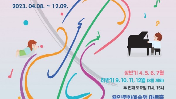 키즈인비또 포스터 (재)용인문화재단(이사장 이상일)의 대표적인 상설공연 가 2023년, ‘클래식 멜로디 마켓’이라는 주제로 돌아왔다. 유아동을 위한 클래식 공연으로 오는 4월부터 12월까지(8월 제외) 매월 두 번째 토요일 용인문화예술원 마루홀에서 개최한다. 올해 공연은 쉽고 명쾌한 키즈음악회 전문 해설가인 바이올리니스트 박소연의 해설과 함께 피아노, 첼로, 바이올린으로 구성된 실내악 클래식 연주…