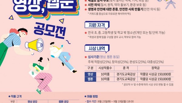 ◦ 23일 ~ 9월 19일, 전국 초·중등 학생과 학교 밖 청소년 대상 공모◦ 세월호 참사 추모, 시민 의식, 안전 의식을 주제로 영상과 웹툰으로 나눠 응모 사진: 공모전 포스터 1부 4.16민주시민교육원(원장 전명선)은 전국 초·중등 학생과 학교 밖 청소년을 대상으로 ‘2022 기억 희망 청소년 영상·웹툰 공모전’을 23일부터 개최한다. 이번 공모전은 4.…