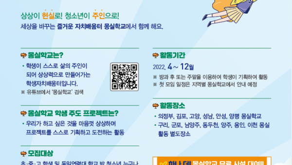 경기도교육청, 2022 몽실학교‧활동 참여 학생 모집
