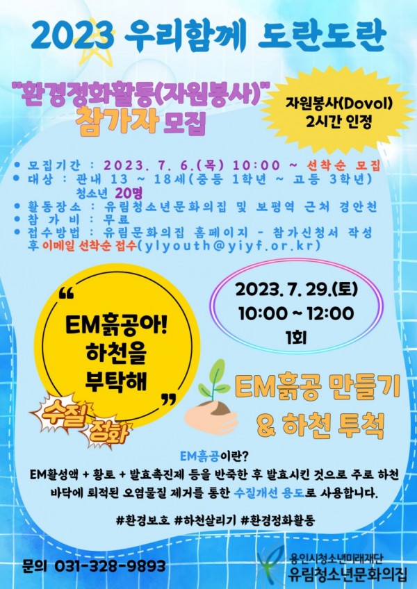 우리함께 도란도란 『1기. 환경정화활동 - EM흙공』 참가자 모집