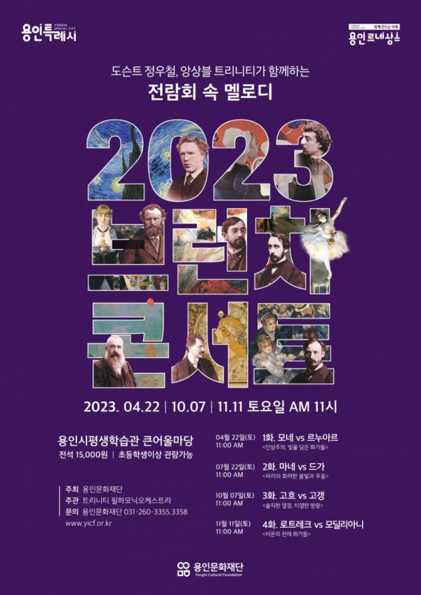 - 연간 총 4회의 시리즈 기획공연 -- 용인시평생학습관 큰어울마당서 선보여 - 사진 설명 : 브런치 콘서트 ‘전람회 속 멜로디’ 포스터 용인문화재단(이사장 이상일)은 오는 4월 22일 용인시평생학습관 큰어울마당에서 ‘2023 브런치 콘서트 - 전람회 속 멜로디’(이하 ‘브런치 콘서트’)를 선보인다. ‘브런치 콘서트’는 4월 첫 공연을 시작으로 7월, 10월, 11월…