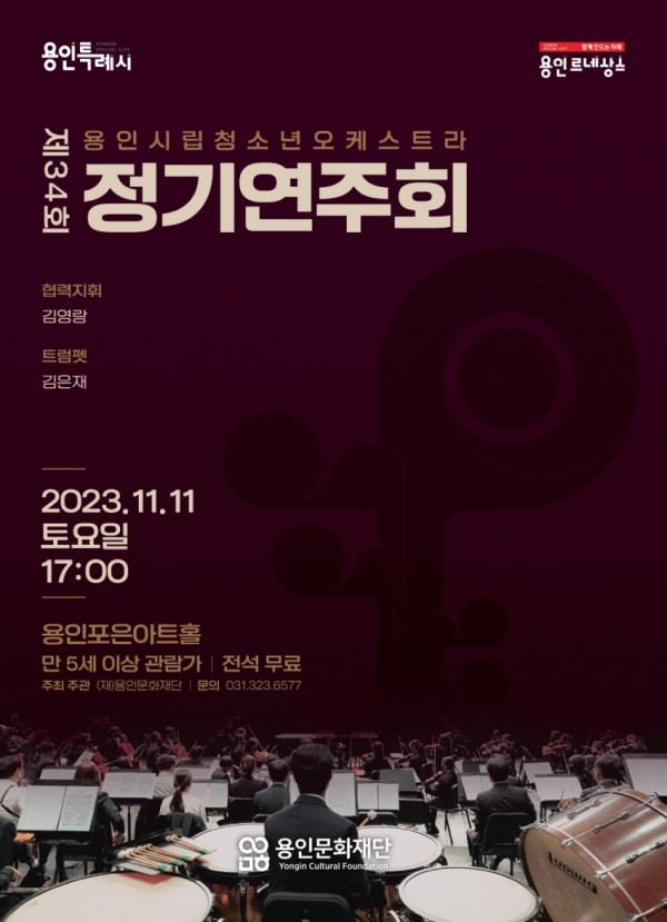 용인문화재단(이사장 이상일)은 11월 11일 용인포은아트홀에서 용인시립청소년오케스트라 ‘제34회 정기연주회’를 개최한다. 용인시립청소년오케스트라는 매년 지속적인 정기연주회, 찾아가는 음악회 등의 연주 활동을 진행하며 용인의 문화예술 저변 확대에 선도적인 역할을 해오고 있다. 오는 11월에 선보일 ‘제34회 정기연주회’는 협력지휘자 김영랑과 함께한다. 김 지휘자는 독일 카셀 국립…