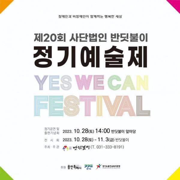 2023년은 반딧불이가 20주년이 되는 해로 YES WE CAN은 ‘우리는 할 수 있다’라는 뜻이다. Yes We Can으로 반딧불이가 꿈꾸는 세상, 장애인과 비장애인이 함께 행복할 수 있는 신나는 현장으로 좋은 가을날 10월 28일(토) 2시에 스무번째 문을 연다. 반딧불이 정기예술제는 매년 지역주민과 소통하고 교감할 수 있는 문화예술의 장으로서 상징성을 갖고, 사회적 연대감…