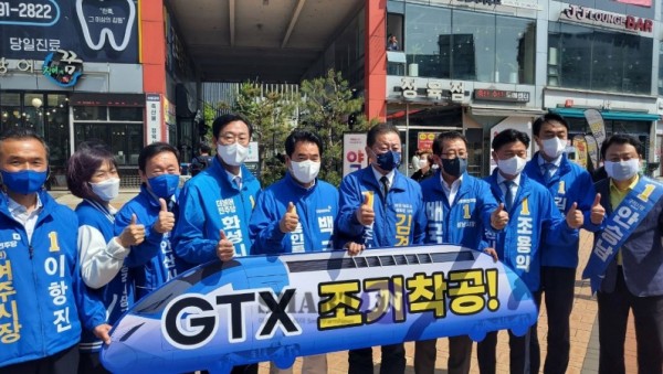 백군기 더불어민주당 용인시장 예비후보는 12일 김포시 장기역에서 김동연 경기도지사 후보 및 18개 기초단체장 후보와 함께 ‘윤석열 정부의 GTX 공약 파기 공동 기자회견’을 열고 GTX 조기착공을 촉구했다. 백군기 예비후보는 이 자리에서 GTX …