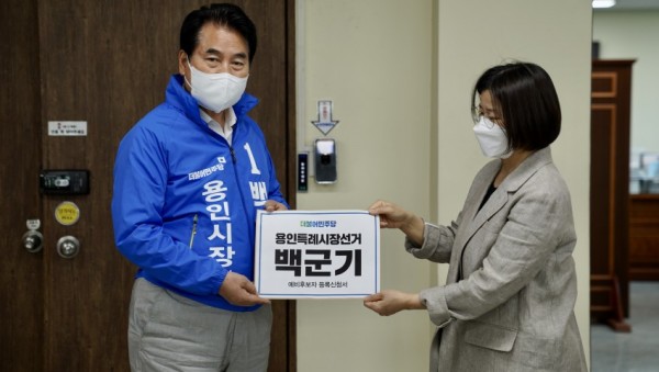 백군기 용인시장은 2일 6·1 지방선거 더불어민주당 예비후보 등록을 마치고, 중단 없는 용인 발전을 위한 재선시장 도전에 나섰다. 이날 예비후보 등록에 앞서 백 시장은 “민선 7기 4년 동안 묵은 과제들을 해결하고, 또 다시 시민 여러분과 함께 앞으로 달려가고자 한다.”면서 “…