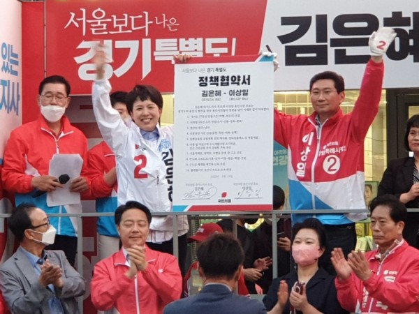 - 이상일 후보 등 국민의힘 시장·시도의원 후보 합동 출정식 -- 사통팔달 전철망·반도체 벨트·주요 저수지 공원화 등 주력 -- 김은혜 경기지사 후보 “원팀으로 용인발전에 힘 모을 것”-“도지사·시장·시도의원 후보가 한마음으로 뭉쳐 최단기간 내에 용인시 발전을 정상 궤도로 올리고 최단기간 내에 명품도시로 탈바꿈시킬 수 있도록 최선을 다할 것입니다.” 국민의힘 김은혜 경기도지사 후보와 이상일 용인특례시장 후보, 시·도의…