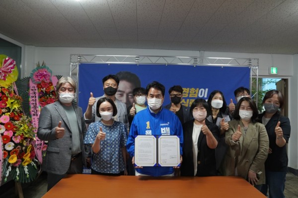 백군기 더불어민주당 용인특례시장 후보는 오늘(19일) 신갈오거리 선거사무소에서 용인시 사회적기업협의회 김민정 회장, 용인시 협동조합협의회 이종환 회장 등과 함께 ‘용인특례시 사회적경제 활성화를 위한 협약’을 체결하였다. 백 후보와 이들 협의회는 ▲사회적경제과 신설 ▲사회적경제 관련 예산 증액 ▲사회적경제 지역특화사업 선정 및 육성 ▲사회적경제기금 조성 ▲공공조달 우선구매 확대 등을 위해…
