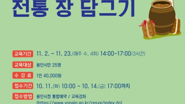 용인특례시 ‘쉽게 배우는 전통 장 담그기’ 강좌…수강생 모집