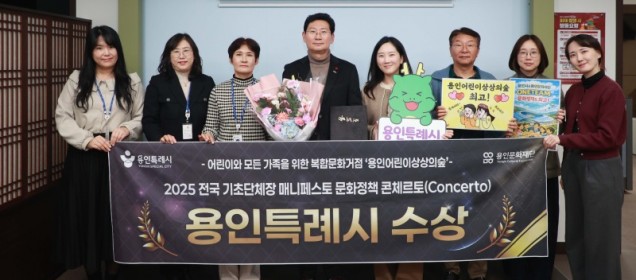 용인특례시는 23일 강원도 원주시에서 열린 ‘2025 문화정책 콘체르토(Concerto)’에서 최우수상을 수상했다고 25일 밝혔다. ‘문화정책 콘체르토’는 한국매니페스토실천본부와 강원특별자치도경제진흥원이 공동 주최하는 정책 경연대회로, 우수 문화정책과..