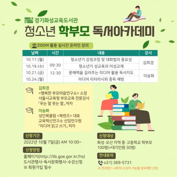 경기화성교육도서관, ‘청소년 학부모 독서 아카데미’ 온라인 교육 실시
