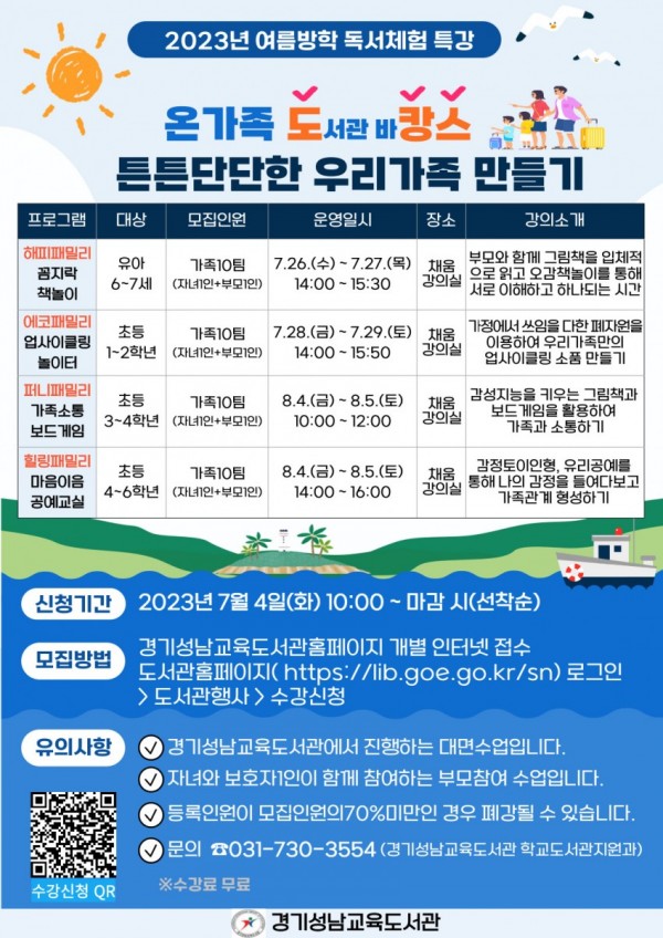 “온가족 도서관 바캉스, 튼튼단단한 우리가족 만들기”