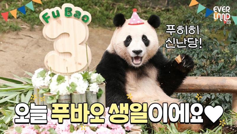 (귀여움주의) 생일 케이크 받고 신난 푸바오