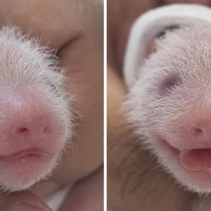에버랜드 쌍둥이 판다(왼쪽부터 첫째, 둘째)_출생 6일차 (1) 강철원 사육사(상단 왼쪽)와 송영관 사육사(상단 오른쪽)가 쌍둥이 …