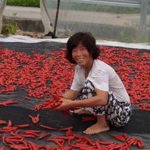 고추 말리시는 아주머니