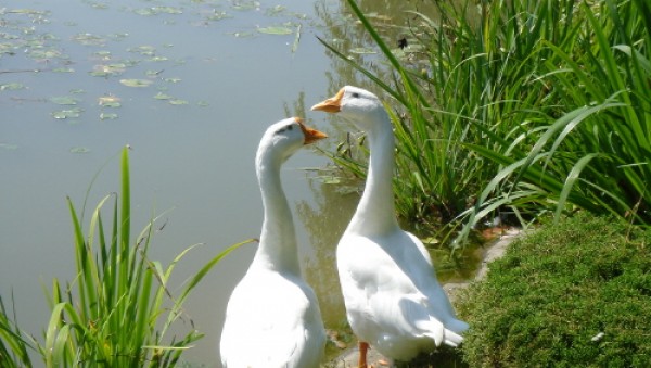 봄을 맞은 거위 부부(아님 연인인지..)가 물가에서 서로 마주 쳐다보면서 사랑을 나누고 있다. 포항 전정일기자