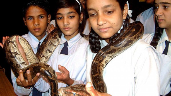 인도의 국립과학관의 기념행사에 참가한 10대들의 모습. 뱀의 서식자 및 습성을 알아보는 공부까지는 좋았지만,…