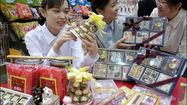 수능시험을 앞둔 신세계 백화점 강남점을 찾은 소비자들이 행운선물 전문매장에서 수능합격기원 초콜릿, 찹쌀떡 등을 고르고 있다…